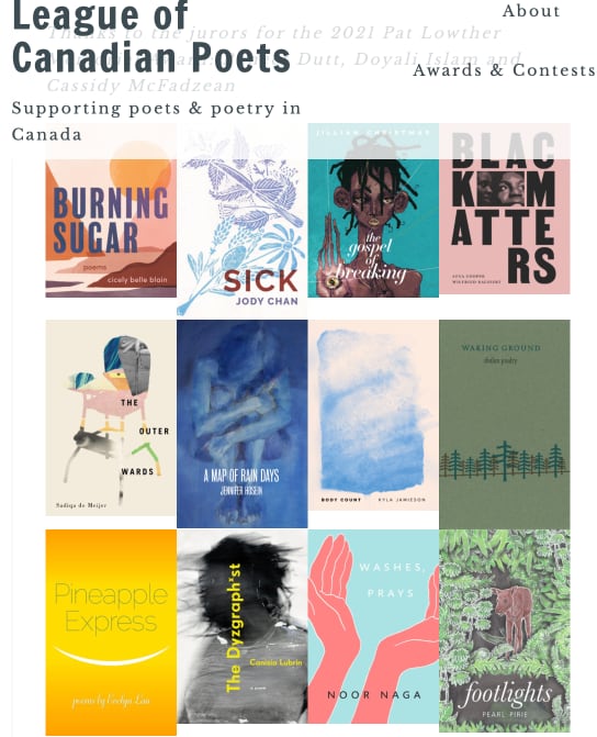 Thanks to the jurors for the 2021 Pat Lowther Memorial Award: Puneet Dutt, Doyali Islam and Cassidy McFadzean