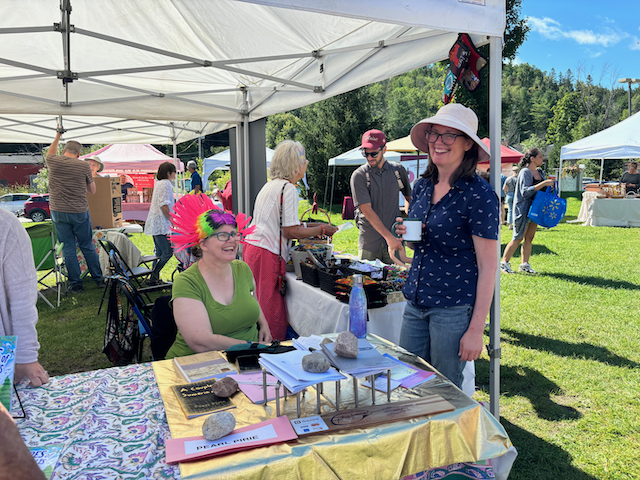 Aug 10th was the annual authors’ market at the Wakefield Farmer’s Market. A few people asked, as usual, wow, is this every week? Sadly know, but gladly no, because sometimes it’s a feature of glassworks, or woodworking, ceramics, or community services, such as death duelas, or forest replanting, or kids crafts.