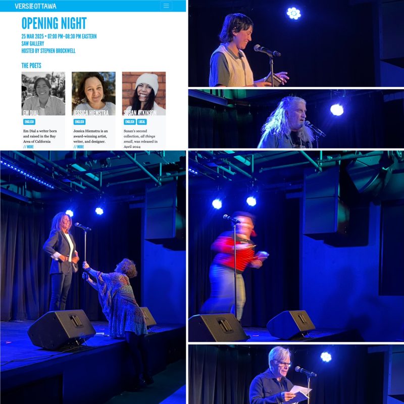 VerseFest runs March 25-29. The kickoff was at Saw Gallery, Ottawa. It runs every day. We are so lucky to have access to this and some events are even offered for free.